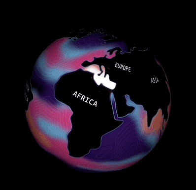 This part is about the concentration of plastic pollution. Based on the location of plastic pollution, I use the form of the rotating sphere and the different colors to indicate the concentration per square kilometer.