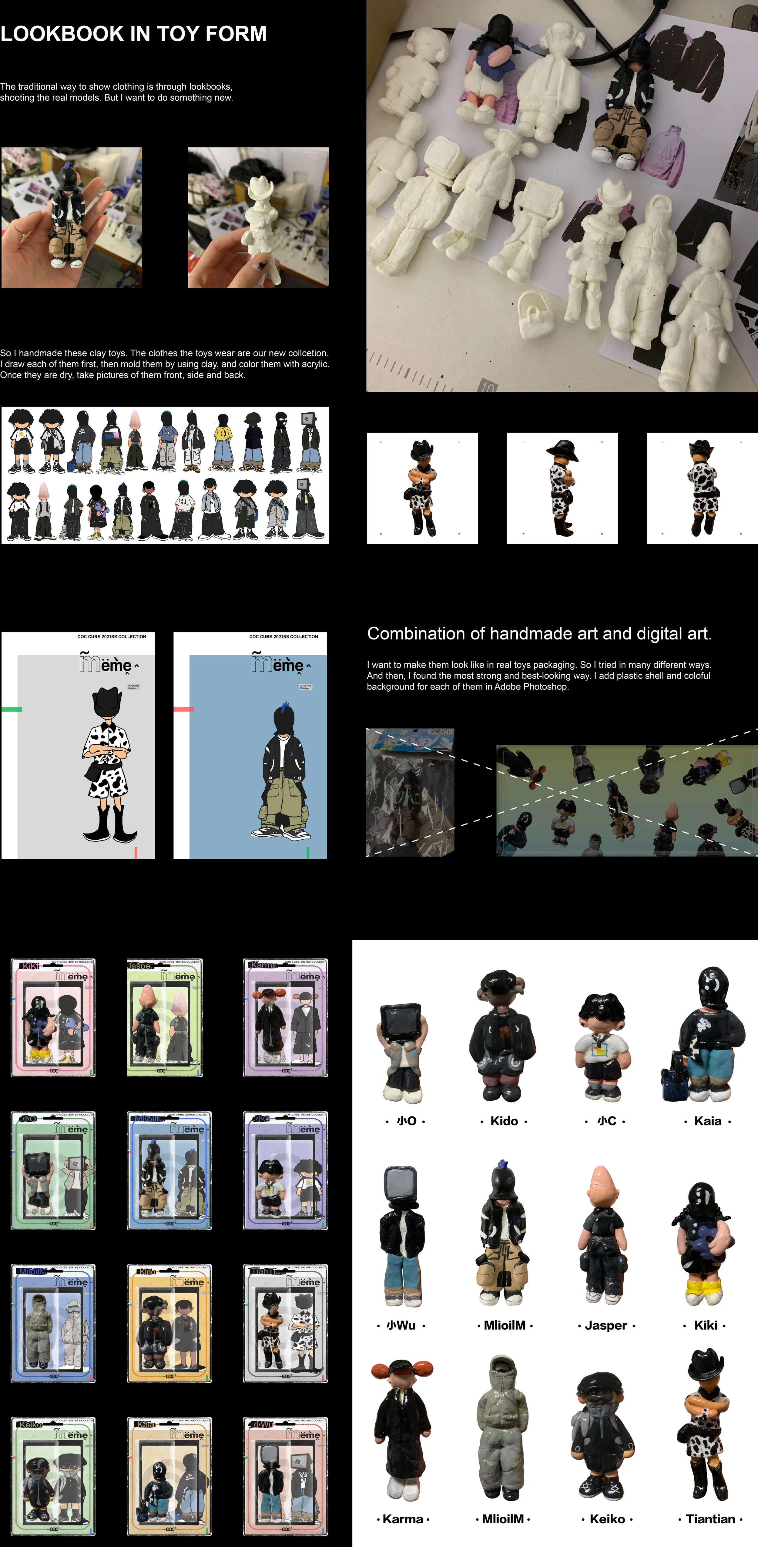 Here are some gifs. I fill the clothing with plastic paper and newspaper, make it looks like a real person wear it. And take picture of different angles, then edit them in Adobe After Effects. Make it turn around. This is my way to show the clothing, and also match the meaning of MEME.