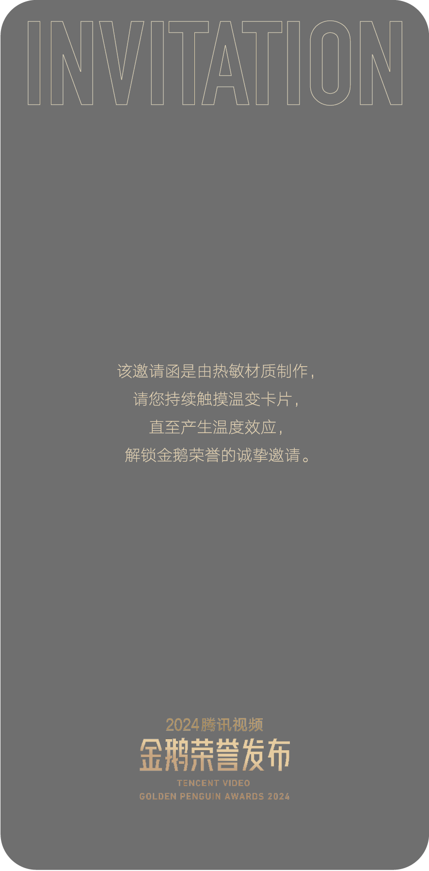 The invitation for the Golden Penguin Awards 2024 is crafted from a thermosensitive material. When guests receive the invitation, the heat from their fingertips gradually reveals the contour lines on the inner pages, making them increasingly visible until they fully appear. This process creates a ceremonial and mysterious experience of unveiling a secret. The outer shell of the invitation is made of acrylic material and opens with a sliding mechanism.